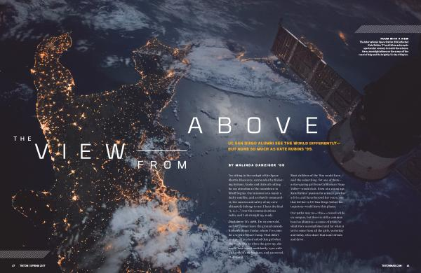 UC SAN DIEGO ALUMNI SEE THE WORLD DIFFERENTLY — BUT NONE SO MUCH AS KATE RUBINS ’ 99 .