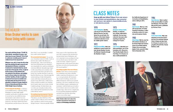 Brian Druker talks more about his research and shares memories of campus at tritonmag . com / druker
