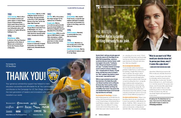 Teresa Stivers , Warren , is CEO of Walden Family Services in San Diego . She was included on the list of “ 2017 Influential Women of the Year ” by the San Diego Daily Transcript .