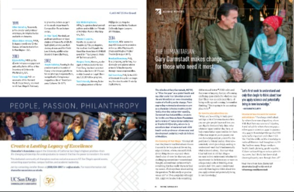 On choosing UC San Diego : “ I looked all over the place for medical school . I knew I wanted to be in a place at the cutting edge of science , where you could think about things in new ways and where there ’ s a lot of room for discovery and challenging conventions — conventional thought , conventional systems — that ’ s something that has really characterized my career . It ’ s always been about asking the questions , ‘ Is this really as good as we can do ?’ or ‘ If we completely rethought this , might we be able to do something