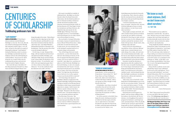 At UC San Diego , the impact of Burbidge ’ s influence is apparent in the Margaret Burbidge Visiting Professorship , a program funded by the Heising-Simons Foundation which brings eminent female physicists to campus . And of course , her influence speaks volumes from those she taught . “ Margaret is the first woman scientist I met ,” says Kristen Sellgren ’ 76 , now an astronomy professor emeritus at The Ohio State University . “ Her discoveries were front-page news when I was growing up in San Diego . She is the reason I went to UCSD for undergrad in 1973 . She has been a great inspiration and a great mentor .”