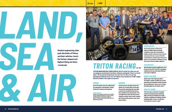 SPEED RACERS ( Above ) Triton Racing members show off their speed machine with advisors Carlos Coimbra and Rob Shanahan ( front , from left ) and Albert P . Pisano , dean of the Jacobs School of Engineering ( center ).