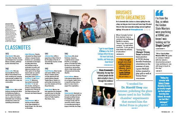 Be it a few words after a lecture or a chance sighting from afar , college can bring you close to icons you ’ ll never forget . We asked Tritons for their most memorable meetings and most significant sightings . Tell us yours at tritonmag @ ucsd . edu
