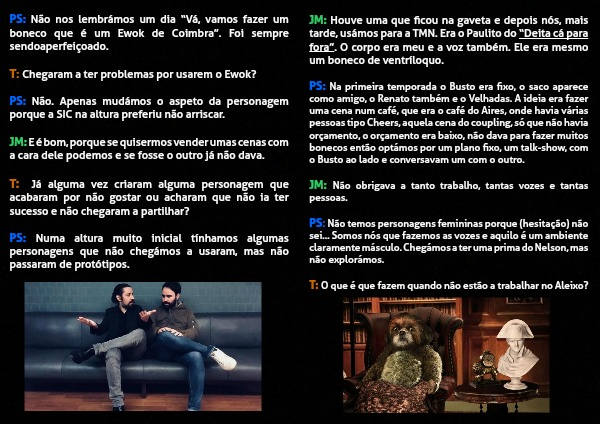 PS: Não temos personagens femininas porque (hesitação) não sei... Somos nós que fazemos as vozes e aquilo é um ambiente claramente másculo. Chegámos a ter uma prima do Nelson, mas não explorámos.