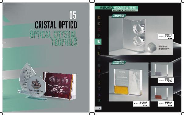 CRISTAL ÓPTICO . OPTICAL CRYSTAL TROPHIES NO INCLUYE GRABACIÓN . ENGRAVING IS NOT INCLUDED 01 02 03 04 05 06 07 08 09 10 11 12 13 14 15 73