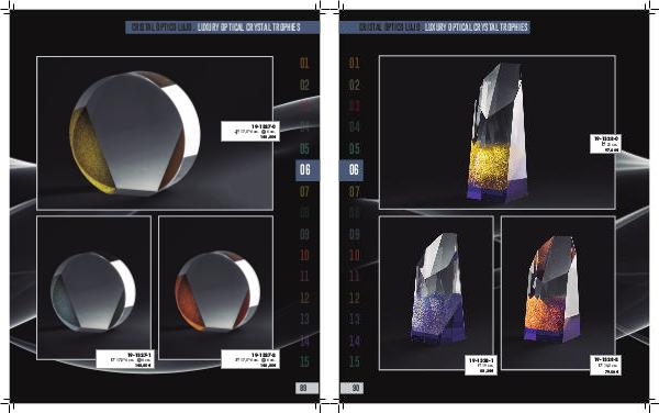 CRISTAL ÓPTICO LUJO . LUXURY OPTICAL CRYSTAL TROPHIES 01 02 03 04 19-1328-0 21 cm. 05 97,66€ 06 07 08 09 10 11 12 13 14 15 90 19-1328-1 19-1328-2 19 cm. 16,5 cm. 88,34€ 79.06€