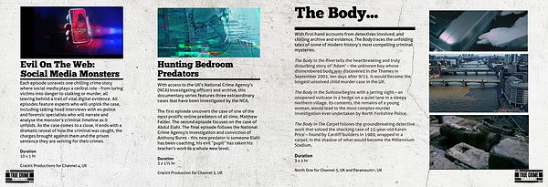Each episode unravels one chilling crime story where social media plays a central role - from luring victims into danger to stalking or murder, all leaving behind a trail of vital digital evidence. All episodes feature experts who will unpick the case, including talking head interviews with ex-police and forensic specialists who will narrate and analyse the monster’s criminal timeline as it unfolds. As the case comes to a close, it ends with a dramatic reveal of how the criminal was caught, the charges brought against them and the prison sentence they are serving for their crimes.