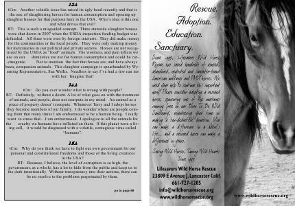 been, companion animals. This slaughter campaign is spearheaded by Wyoming Representative, Sue Wallis. Needless to say I’ve had a few run ins