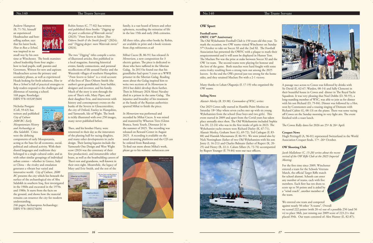 Robin Somes( C, 77-82) has written and published three books:“ Digging up the past: a collection of Waterside stories”( 2023);“ From Severn to Solent: Theo Osborn Smith & the Smith family”( 2024); and“ Digging deeper: more Waterside stories”( 2024).