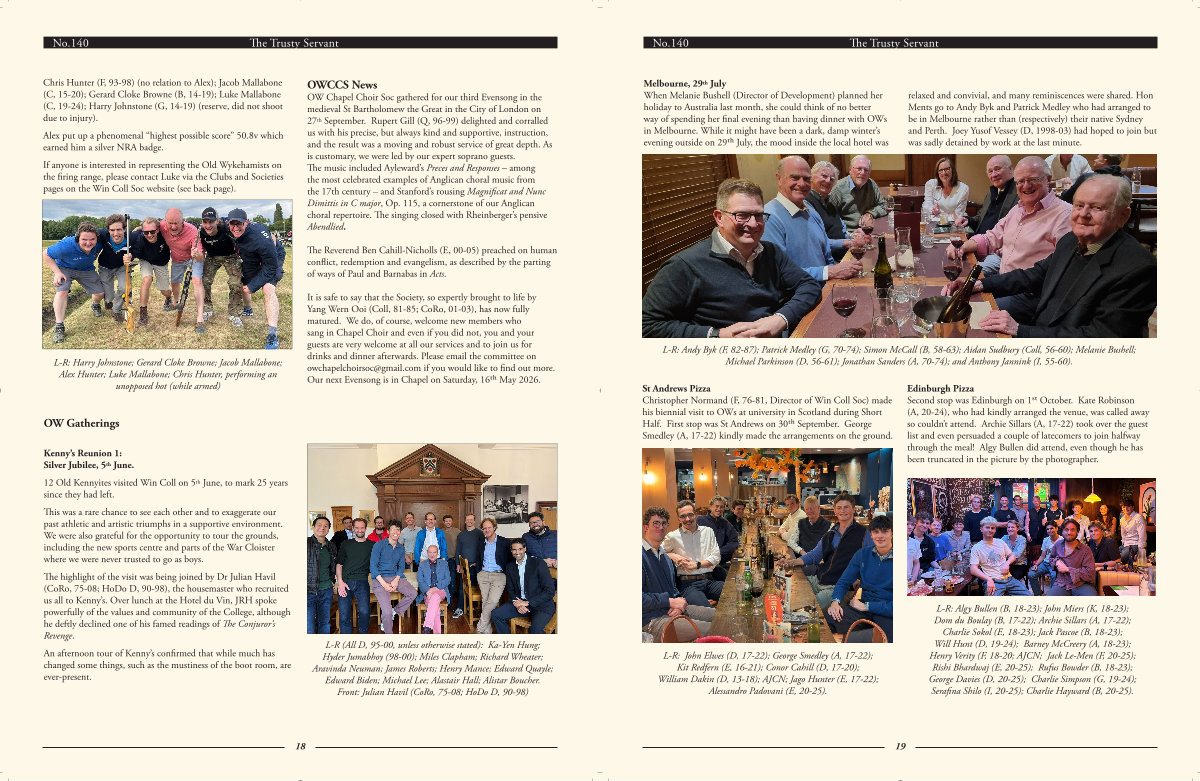 St Andrews Pizza Christopher Normand( F, 76-81, Director of Win Coll Soc) made his biennial visit to OWs at university in Scotland during Short Half. First stop was St Andrews on 30th September. George Smedley( A, 17-22) kindly made the arrangements on the ground.