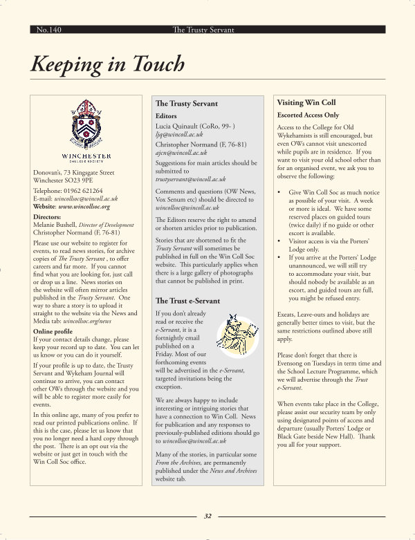 Stories that are shortened to fit the Trusty Servant will sometimes be published in full on the Win Coll Soc website. This particularly applies when there is a large gallery of photographs that cannot be published in print.
