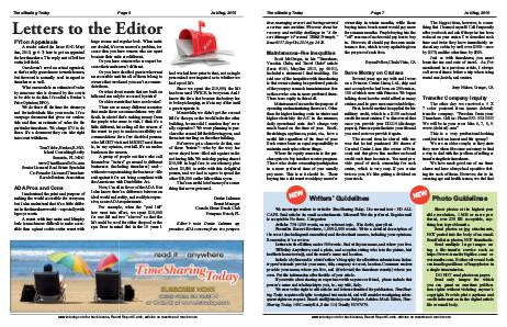 We encourage readers to write for TimeSharing Today. Use normal text – NO ALL