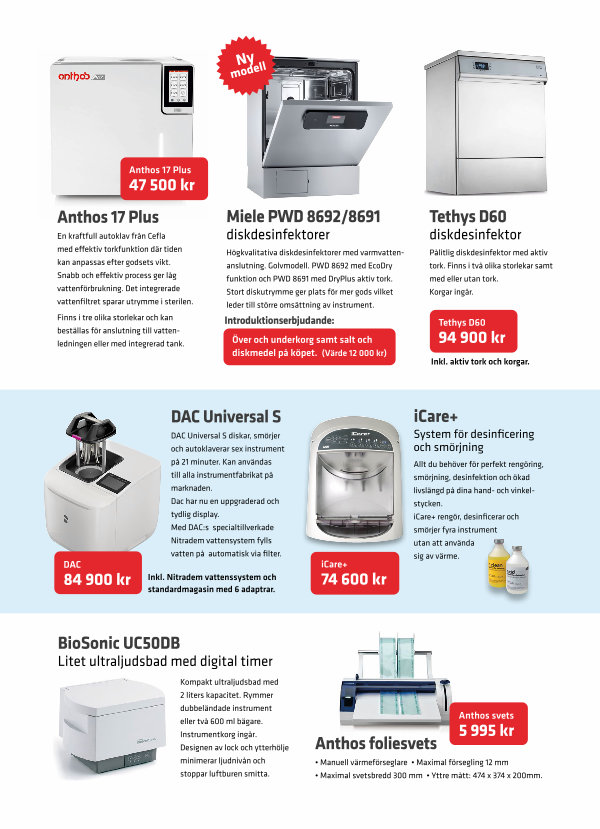 Pålitlig diskdesinfektor med aktiv tork. Finns i två olika storlekar samt med eller utan tork. Korgar ingår.