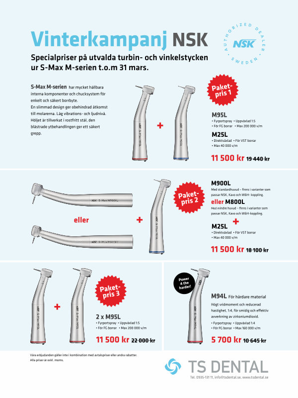 Specialpriser på utvalda turbin- och vinkelstycken ur S-Max M-serien t. o. m 31 mars.