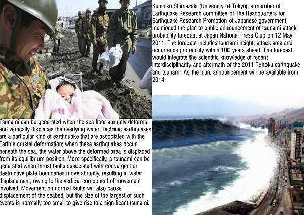 Tsunami can be generated when the sea floor abruptly deforms and vertically displaces the overlying water. Tectonic earthquakes are a particular kind of earthquake that are associated with the Earth's crustal deformation; when these earthquakes occur beneath the sea, the water above the deformed area is displaced from its equilibrium position. More specifically, a tsunami can be generated when thrust faults associated with convergent or destructive plate boundaries move abruptly, resulting in water displacement, owing to the vertical component of movement involved. Movement on normal faults will also cause displacement of the seabed, but the size of the largest of such events is normally too small to give rise to a significant tsunami.