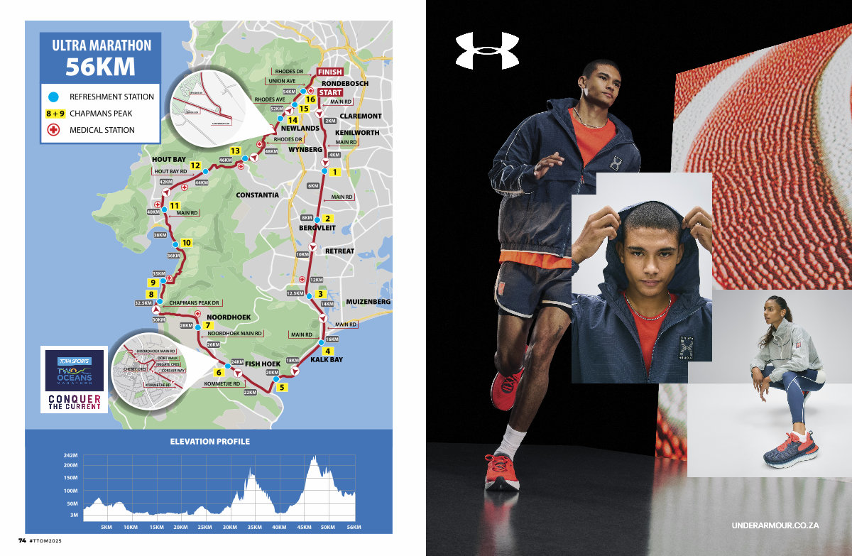 74 # TTOM2025 START FINISH NOORDHOEK MAIN RD CORSAIR WAY KOMMETJIE RD CHEBEC CRES FRIGATE CRES DORT WALK M6 NOORDHOEK HOUT BAY CONSTANTIA BERGVLEIT RETREAT WYNBERG KENILWORTH CLAREMONT NEWLANDS RONDEBOSCH MUIZENBERG FISH HOEK KALK BAY MAIN RD MAIN RD HOUT BAY RD RHODES DR RHODES DR UNION AVE RHODES AVE MAIN RD MAIN RD MAIN RD MAIN RD NOORDHOEK MAIN RD CHAPMANS PEAK DR KOMMETJIE RD ELEVATION PROFILE 5KM 3M 50M 100M 150M 200M 242M 10KM 15KM 20KM 25KM 30KM 35KM 40KM 45KM 50KM 56KM 12KM 12.5KM 14KM 16KM 18KM 20KM 22KM 24KM 26KM 28KM 30KM 32.5KM 35KM 36KM 40KM 38KM 42KM 44KM 46KM 48KM 50KM 52KM 54KM 2KM 4KM 6KM 8KM 10KM REFRESHMENT STATION CHAPMANS PEAK 8 + 9 ULTRA MARATHON 56KM MEDICAL STATION 16 15 14 13 12 11 9 8 10 7 6 5 4 3 2 1 RHODES DR RHODES DR CANTERBURY DR
