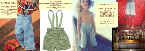 Green Khadi shorts with suspenders and pockets