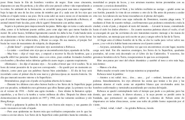 que él extraía una blanca paloma y volvía a cerrar la tapa. Al pasársela a Rebecca, el
