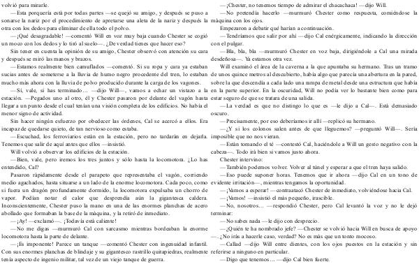 estación. —Pegados uno al otro, él y Chester pasaron por delante del vagón hasta