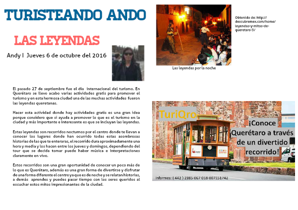 El pasado 27 de septiembre fue el día internacional del turismo. En Querétaro se llevo acabo varias actividades gratis para promover el turismo y en esta hermosa ciudad una de las muchas actividades fueron las leyendas queretanas.