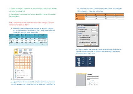 los cuadros es la primera opción estos les dejara poner la cantidad de filas, columnas, y el tamaño entre otros. 3. 8. 13. 4. 9. 14. 5. 10. 15. 6. 11. 16. 7. 12. 17.