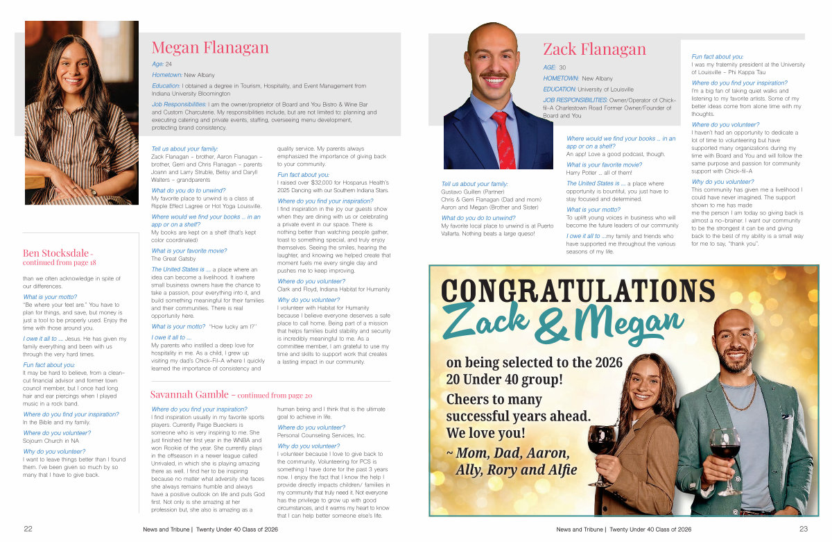 Zack & Megan on being selected to the 2026 20 Under 40 group!