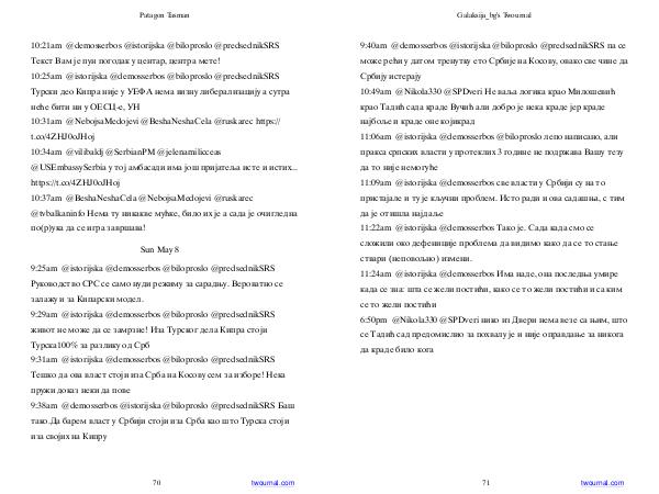 10:21am @ demosserbos @ istorijska @ biloproslo @ predsednikSRS Текст Вам је пун погодак у центар, центра мете! 10:25am @ istorijska @ demosserbos @ biloproslo @ predsednikSRS Турски део Кипра није у УЕФА нема визну либерализацију а сутра неће бити ни у ОЕСЦ-е, УН 10:31am @ NebojsaMedojevi @ BeshaNeshaCela @ ruskarec https:// t. co / 4ZHJ0oJHoj 10:34am @ vilibaldj @ SerbianPM @ jelenamilicceas @ USEmbassySerbia у тој амбасади има још пријатеља исте и истих... https:// t. co / 4ZHJ0oJHoj 10:37am @ BeshaNeshaCela @ NebojsaMedojevi @ ruskarec @ tvbalkaninfo Нема ту никакве мућке, било их је а сада је очигледна по( р) ука да се игра завршава!