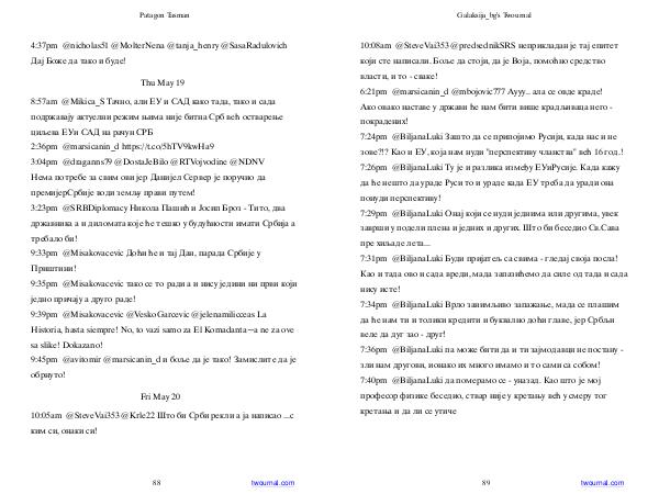 8:57am @ Mikica _ S Тачно, али ЕУ и САД како тада, тако и сада подржавају актуелни режим њима није битна Срб већ остварење циљева ЕУи САД на рачун СРБ 2:36pm @ marsicanin _ d https:// t. co / 5hTV9kwHa9 3:04pm @ draganns79 @ DostaJeBilo @ RTVojvodine @ NDNV Нема потребе за свим ови јер Данијел Сервер је поручио да премијерСрбије води земљу прави путем! 3:23pm @ SRBDiplomacy Никола Пашић и Јосип Броз- Тито, два државника а и диломата које ће тешко у будућности имати Србија а требало би! 9:33pm @ Misakovacevic Доћи ће и тај Дан, парада Србије у Приштини! 9:35pm @ Misakovacevic тако се то ради а и нису једини ни први који једно причају а друго раде! 9:39pm @ Misakovacevic @ VeskoGarcevic @ jelenamilicceas La Historia, hasta siempre! No, to vazi samo za El Komadanta ~ a ne za ove sa slike! Dokazano! 9:45pm @ avitomir @ marsicanin _ d и боље да је тако! Замислите да је обрнуто!