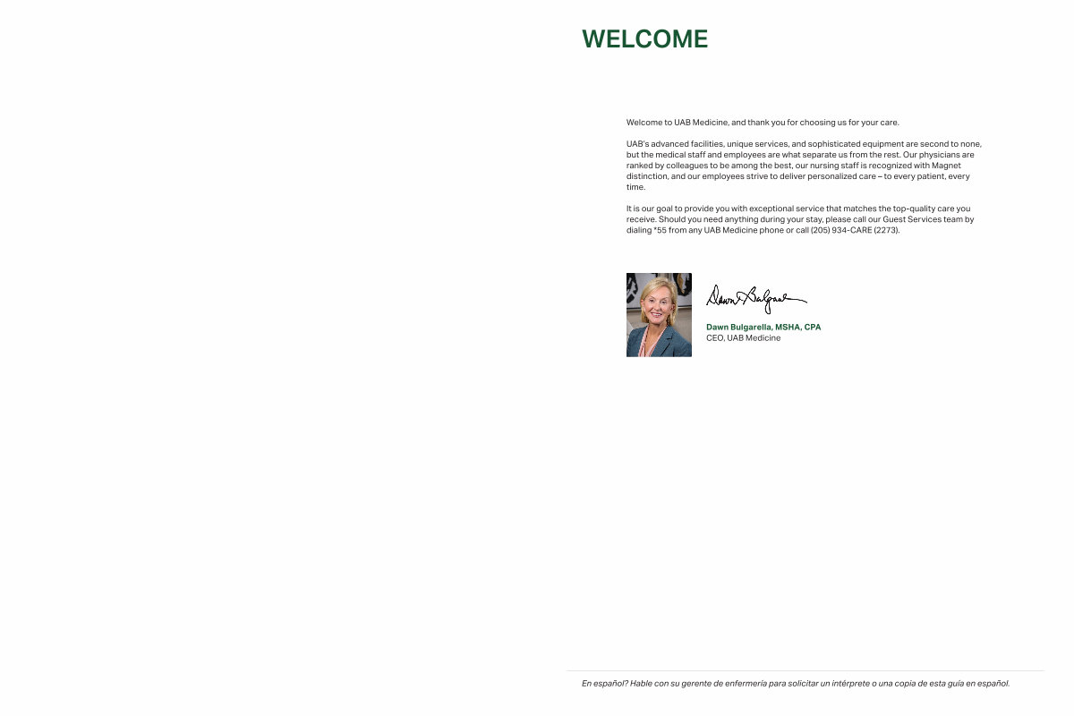 Welcome to UAB Medicine, and thank you for choosing us for your care.