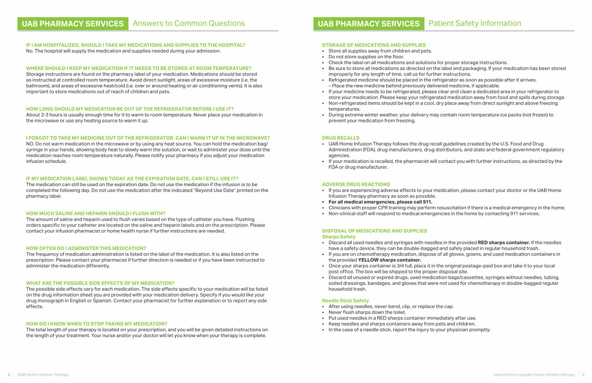 • If you are experiencing adverse effects to your medication, please contact your doctor or the UAB Home Infusion Therapy pharmacy as soon as possible.