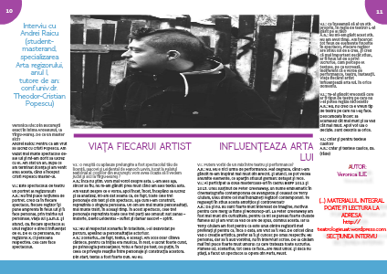 Andrei Raicu: Pentru că am vrut să lucrez cu Cristi Popescu. Am văzut mai multe spectacole de-ale lui şi mi-am dorit să lucrez cu el. Am stat un an, după ce am terminat licenţa şi am venit anul acesta, când a început Cristi Popescu master-ul.