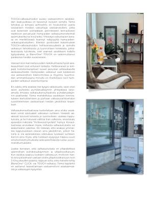 TOUCH-valkaisuhoidon suosio vastaanottoni asiakkaiden keskuudessa on kasvanut vuosien varrella . Tämä tehokas ja lempeä vaihtoehto on houkutellut useita sosiaalisen median vaikuttajia vastaanotolleni , jotka ovat kokeneet voimakkaat , perinteiseen kemialliseen reaktioon perustuvat hampaiden valkaisumenetelmät epämukaviksi tai kivuliaiksi . Yhteistyö vaikuttajien kanssa on merkittävästi lisännyt näkyvyyttä hampaidenvalkaisupalveluilleni . Etenkin positiiviset kokemukset TOUCH-valkaisuhoidon hellävaraisuudesta ja samalla valkaisun tehokkaista ja luonnollisen kirkkaista , pitkäkestoisista tuloksista , ovat saaneet asiakkaani todella tyytyväisiksi , ja BlancOne ® TOUCH on vakiinnuttanut paikkansa heidän suosiossaan .