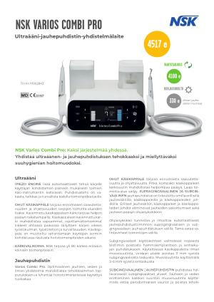 NSK Varios Combi Pro : Kaksi järjestelmää yhdessä . Yhdistää ultraäänen- ja jauhepuhdistuksen tehokkaaksi ja miellyttäväksi suuhygienian hoitomuodoksi .