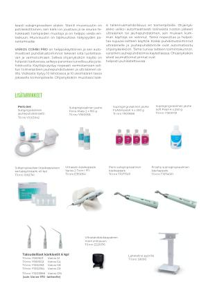 VARIOS COMBI PRO on helppokäyttöinen ja sen automaattiset puhdistustoiminnot tekevät siitä luotettavavan ja varmatoimisen . Selkeä ohjainyksikön näyttö on helposti luettavissa , selkeys parantaa turvallisuutta ja tehokkuutta . Käyttäjä pystyy nopeasti varmistamaan valitun toimenpiteen jauhepuhdistuksen ja ultraäänen välillä . Valikosta löytyy 10 tehotasoa ja 10 vesimäärän tasoa jokaiselle toimenpiteelle . Ohjainyksikön muistissa lisäk-