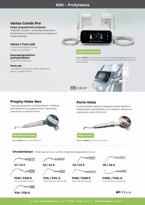 Til . nro Y1002843 • Varios Combi Pro , VA2-HP LUX led-käsikappale , kärjet G4 , G8 , G16 , 3 x kärkiavain , sterilointirasia , supragingivaalinen jauhepuhdistin sekä monitoimijalkakytkin .
