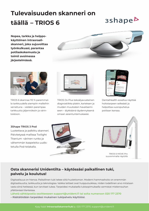 Kysy lisää! Intraoraaliskannerituki p. 020 177 2370, support @ unident. fi
