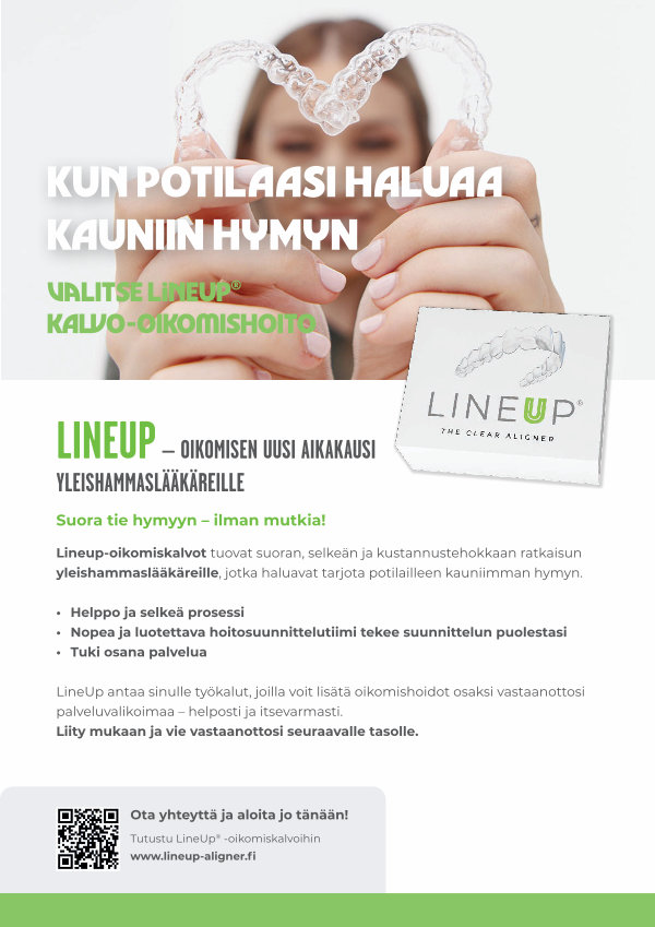 LineUp antaa sinulle työkalut, joilla voit lisätä oikomishoidot osaksi vastaanottosi palveluvalikoimaa – helposti ja itsevarmasti. Liity mukaan ja vie vastaanottosi seuraavalle tasolle.