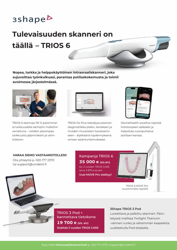 Kysy lisää! Intraoraaliskannerituki p. 020 177 2370, support @ unident. fi