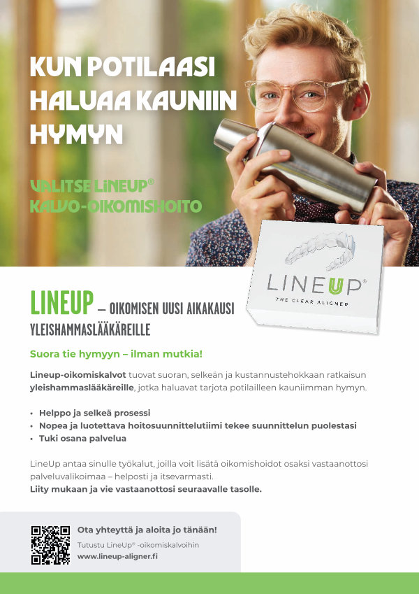 LineUp antaa sinulle työkalut, joilla voit lisätä oikomishoidot osaksi vastaanottosi palveluvalikoimaa – helposti ja itsevarmasti. Liity mukaan ja vie vastaanottosi seuraavalle tasolle.