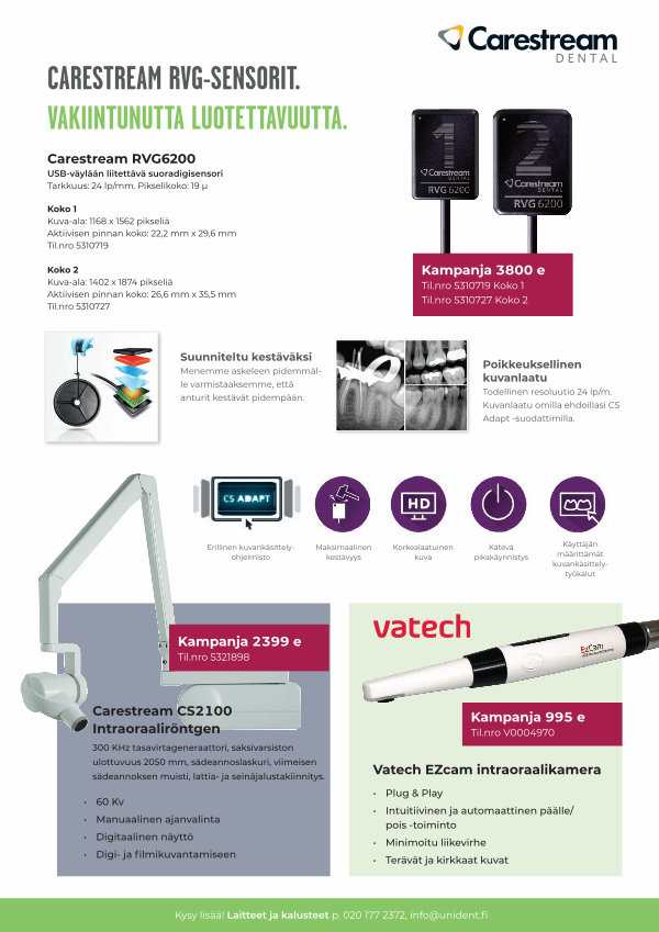 CARESTREAM RVG-SENSORIT. VAKIINTUNUTTA LUOTETTAVUUTTA.