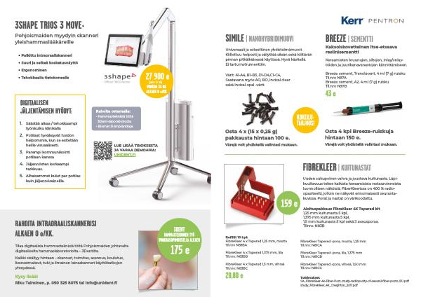 Uuden sukupolven vahva ja joustava kuitunasta . Läpikuultavuus tekee kaikista keraamisista restauroinneista luonnollisen näköisiä . FiberKleerissa on 400 % radioopasiteetti , jolloin ne näkyvät erinomaisesti seurantakuvissa . Porat ja nastat on värikoodattu .
