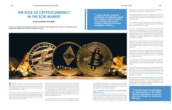There seems to be a dire need for sovereign states and international bodies to come up with a globally accepted legal framework that would allow cryptocurrencies to thrive and in turn allow investment immigration firms to offer tailored solutions to their clients .