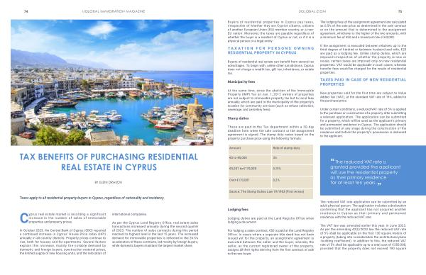 TAX BENEFITS OF PURCHASING RESIDENTIAL REAL ESTATE IN CYPRUS