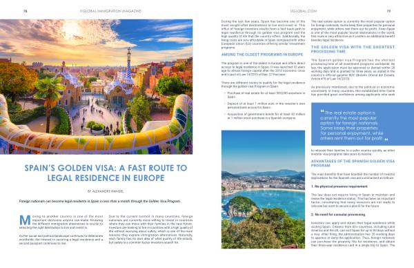 During the last few years , Spain has become one of the most sought-after destinations to live and invest in . This influx of foreign investors results from a fast-track path to legal residence through its golden visa program and the high quality of life that the country offers . Additionally , the living costs are very affordable in Spain compared with other European Union ( EU ) countries offering similar investment programs .