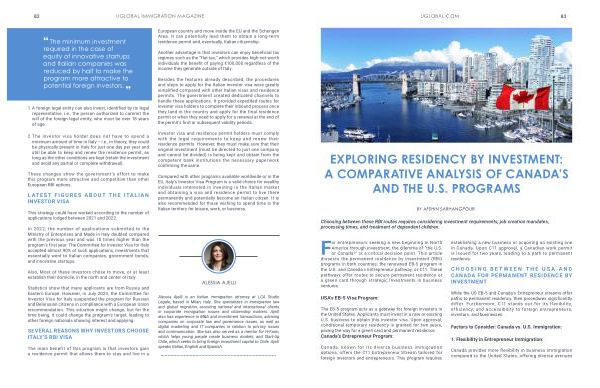 EXPLORING RESIDENCY BY INVESTMENT : A COMPARATIVE ANALYSIS OF CANADA ’ S AND THE U . S . PROGRAMS