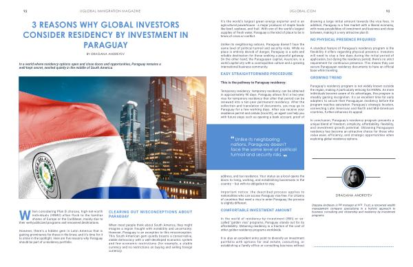 3 REASONS WHY GLOBAL INVESTORS CONSIDER RESIDENCY BY INVESTMENT IN PARAGUAY