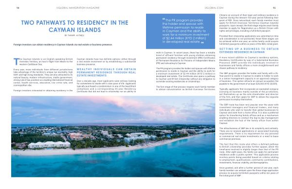 The PR program provides the holder and spouse with lifetime permission to reside in Cayman and the ability to work for a minimum investment of $ 2.44 million ( KYD 2 million ) in developed real estate . The Certificate also opens a pathway to Cayman and British Citizenship without any obligation to surrender existing residencies or citizenships .