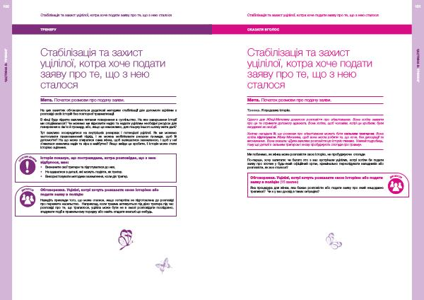 На цих заняттях обговорюються додаткові методики стабілізації для допомоги уцілілим у розповіді своїх історій без повторної травматизації .