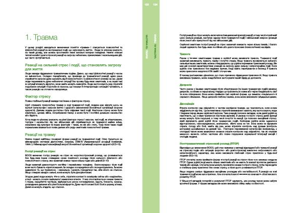 У цьому розділі наводиться визначення поняття « травма » і описуються психологічні та фізіологічні реакції на екстремальні події , що загрожують життю . Люди по різному реагують на такий досвід , але можна простежити певні загальні патерни поведінки . Нижче описані типові негайні і довгострокові реакції на загрозу небезпеки , принизливих і насильницьких дій , що часто зустрічаються .