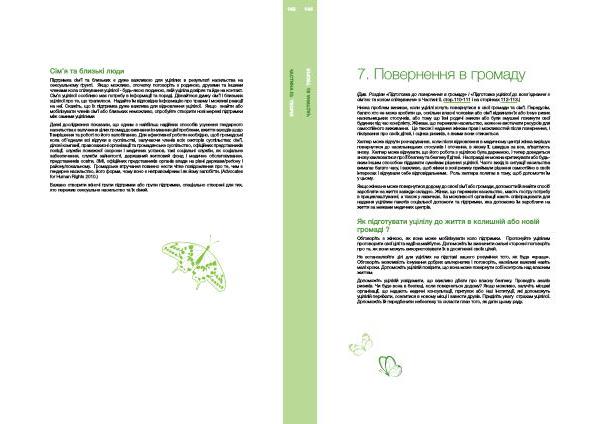 ( Див . Розділи « Підготовка до повернення в громаду » і « Підготовка уцілілої до возз ’ єднання з сім ’ єю та колом спілкування » в Частині II , стор . 110-111 і на сторінках 112-113 .)